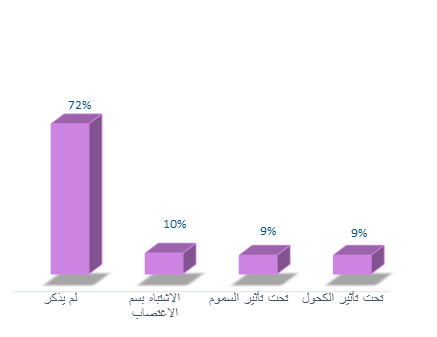 تُظهر المعطيات أنَّ 28% من جرائم الاعتداء الجنسي ترافقت مع وجود تأثير لمواد كالكحول أو السموم أو ما يُعرف بـ“سم الاغتصاب”، ما يشير إلى أن جزءًا من هذه الجرائم جرى في ظروف تغييب متعمّد لوعي الضحية. هذا النمط من الاعتداءات لا يحدث صدفة، بل هو فعل مُخطّط يستخدم فيه المعتدي مواد تُضعف الإدراك وتشلّ القدرة على المقاومة، ما يجعل الجريمة قائمة على نزع السيطرة من جسد الضحية وإخضاعها التام.