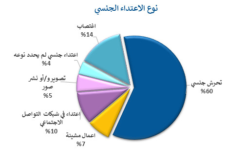 تُظهر البيانات أن التحرش الجنسي يشكّل النسبة الأكبر من الاعتداءات الجنسية بنسبة 60%، ويتضمن سلوكيات لفظية أو جسدية غير مرغوبة تُسبب شعورًا ب التهديد، عدم الارتياح والانزعاج.