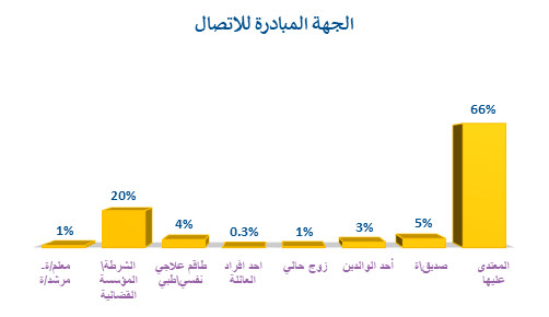 تُظهر البيانات أنَّ 66% من المبادرات بالاتصال جاءت مباشرة من المتضررات أنفسهن، وهو مؤشّر على ارتفاع الوعي والجرأة لدى النساء في كسر الصمت والمطالبة بالدعم. هذا الفعل بحد ذاته يُجسّد مقاومة نسوية ضدّ ثقافة الخوف واللوم، ويعبّر عن استعادة النساء لحقّهن في تقرير مصيرهنّ وطلب المساندة دون وساطة أو خضوع.